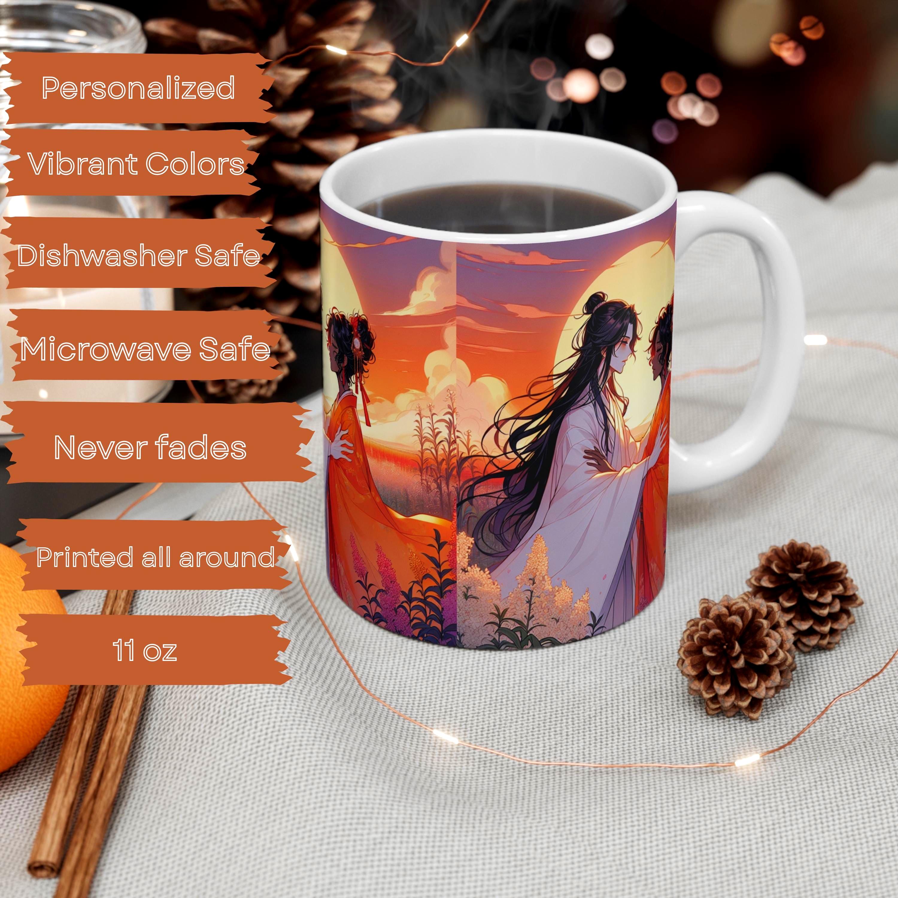 Start your day with this captivating anime coffee mug featuring stunning Japanese art and an aesthetic sunset design that transforms your morning coffee into a special ritual. This ceramic artistic cup makes the perfect morning companion gift for any anime lover's birthday present, showcasing a beautiful animation style that brings vibrant colors to life.