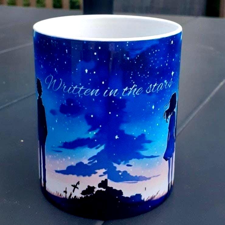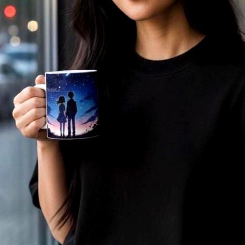 Sip in style with this personalized ceramic mug featuring a romantic celestial design that makes the perfect gift for friends celebrating a new job or couples marking their anniversary. This beautiful blue sky anime-inspired drinkware showcases a constellation cup design that transforms your hot chocolate or coffee experience into something magical, whether enjoyed in the office or at home.