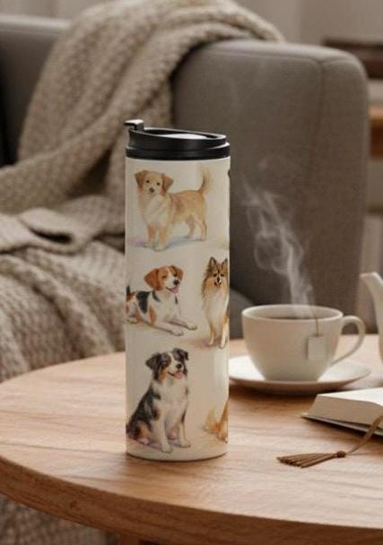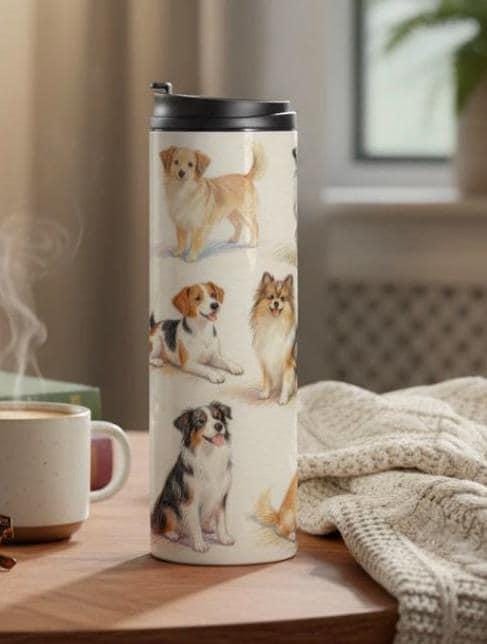 Stay cozy during the festive season with this charming thermal dog tumbler insulated cup, featuring an adorable puppy pattern design that makes it a perfect Christmas gift or holiday mug. This hot beverage container doubles as a stylish drinkware holder with excellent temperature control, keeping your favorite drinks at the ideal warmth while showcasing cute doggie breed friends on its exterior.