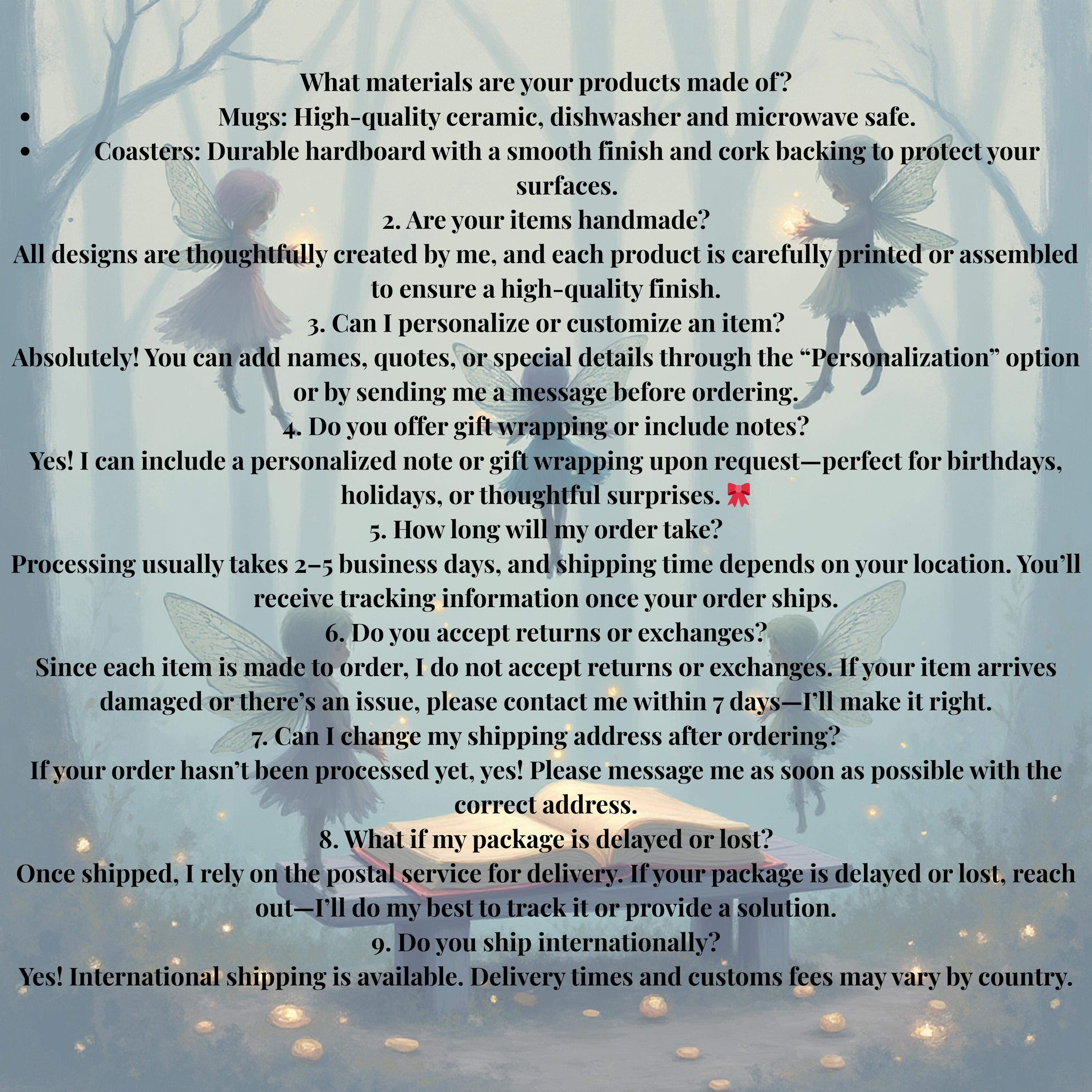 A: Each mug is securely packaged to arrive safely at your door — ready to enchant your morning routine!