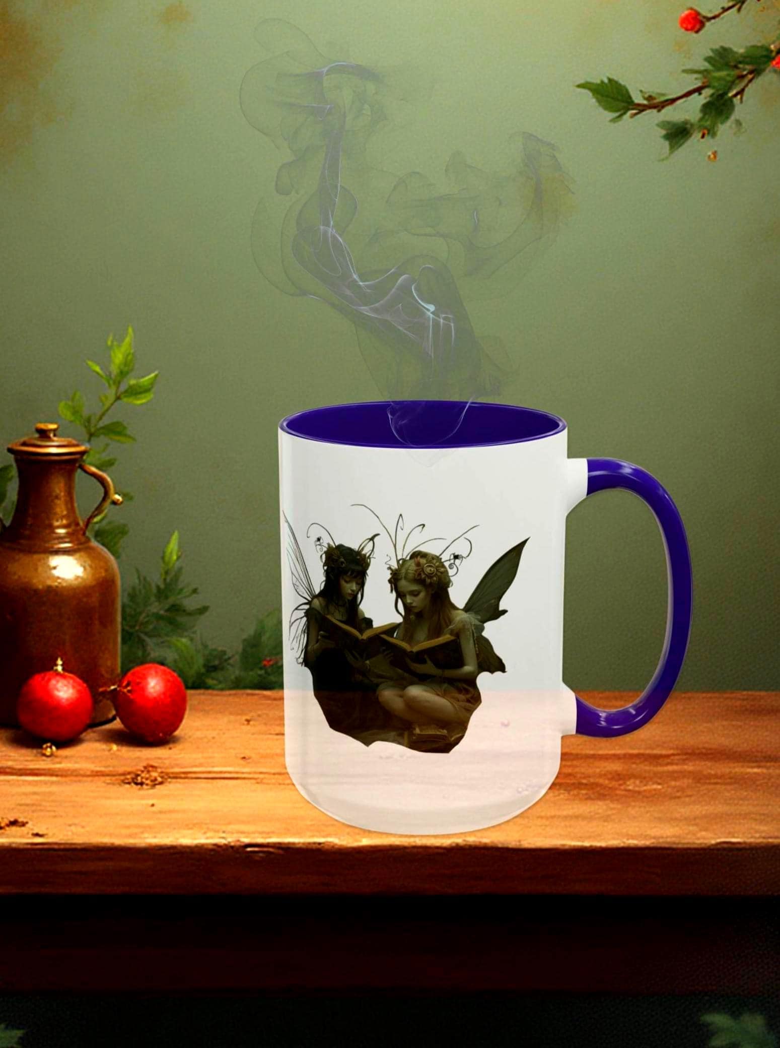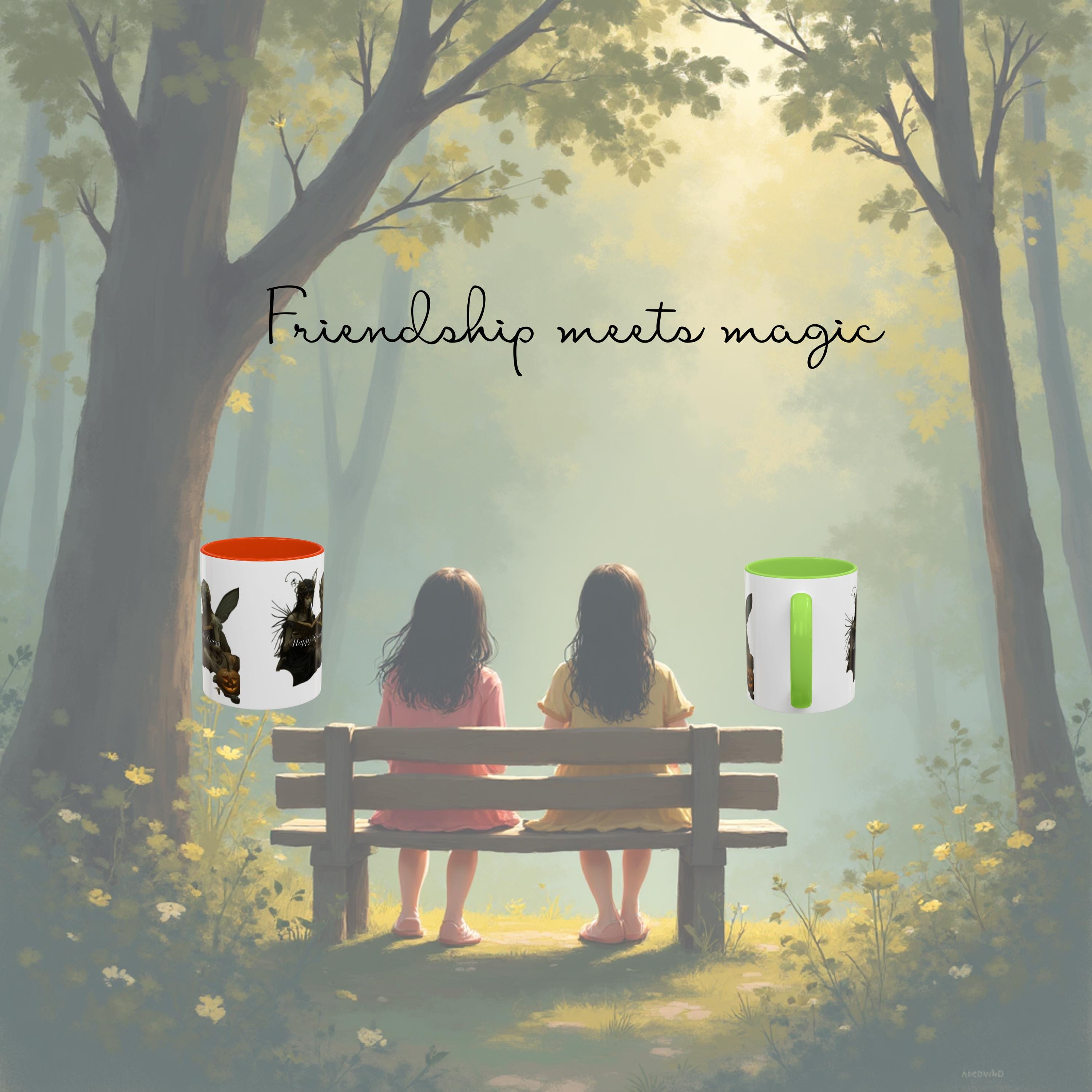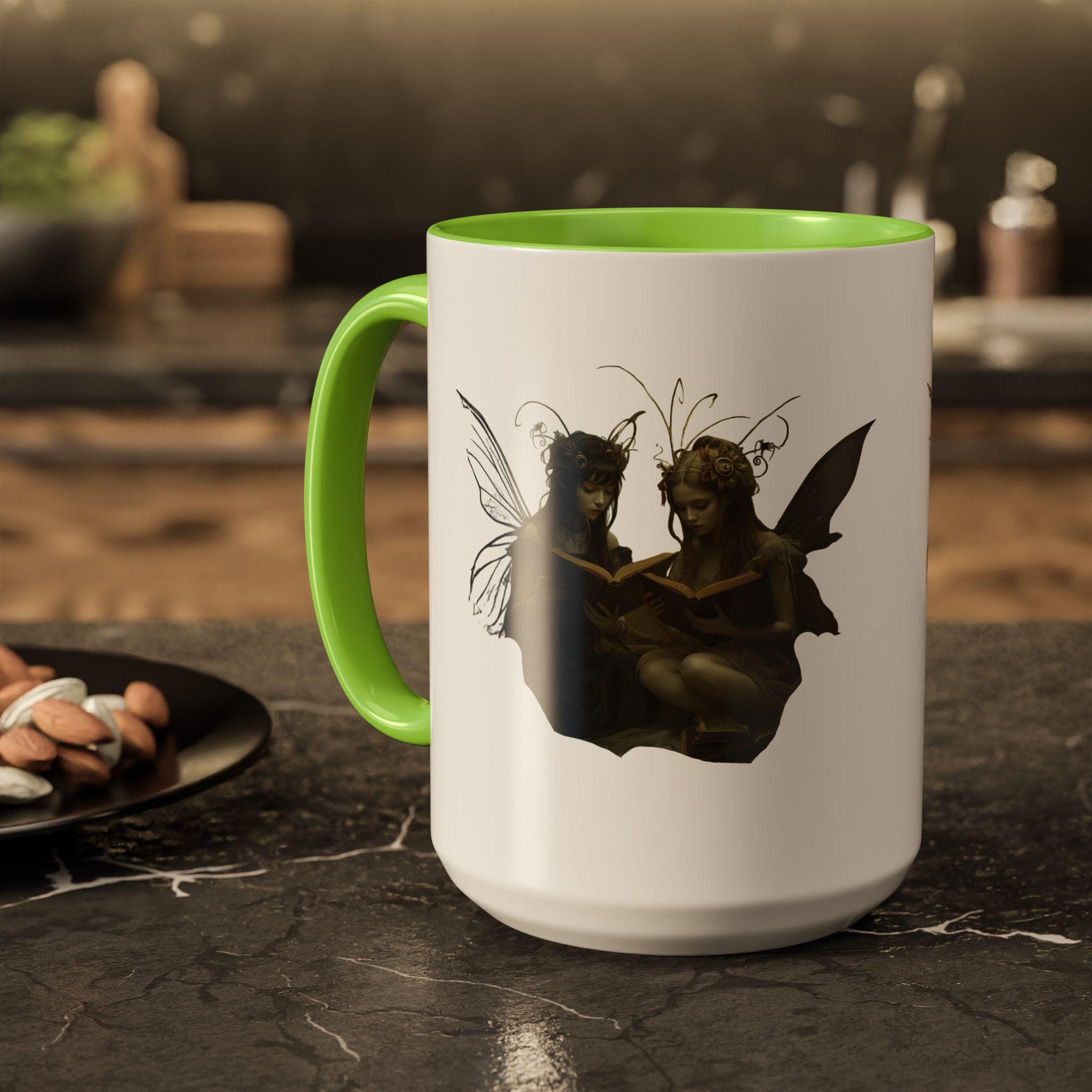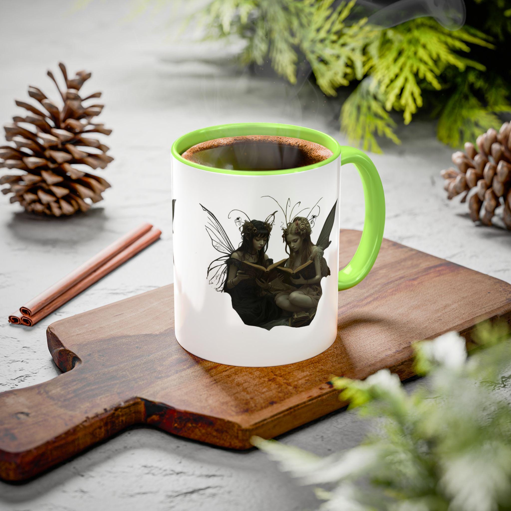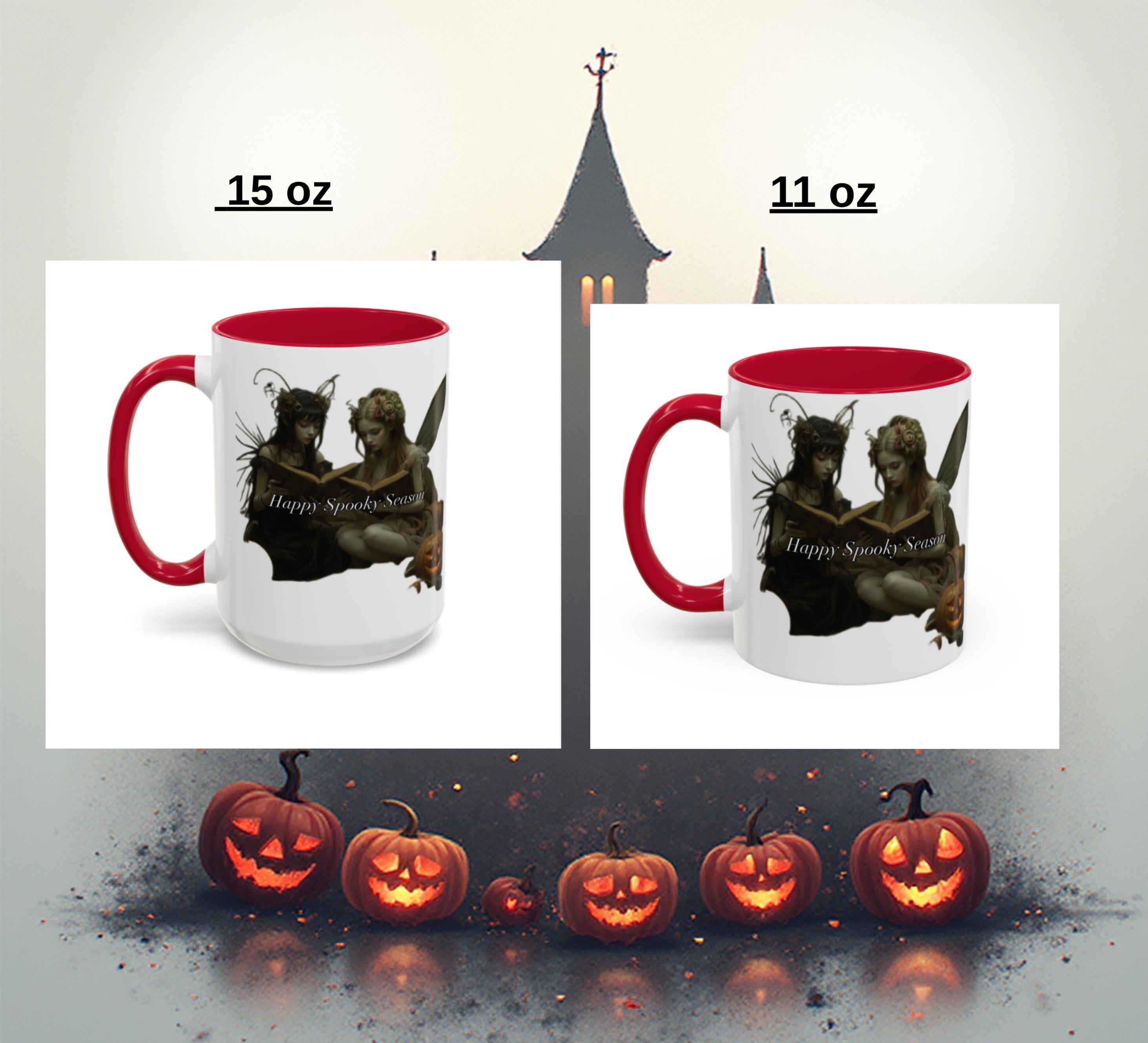 A: The mug features two mystical fairies sharing a quiet moment — a blend of spooky and magical, perfect for Halloween and beyond. 🧚♀️🎃