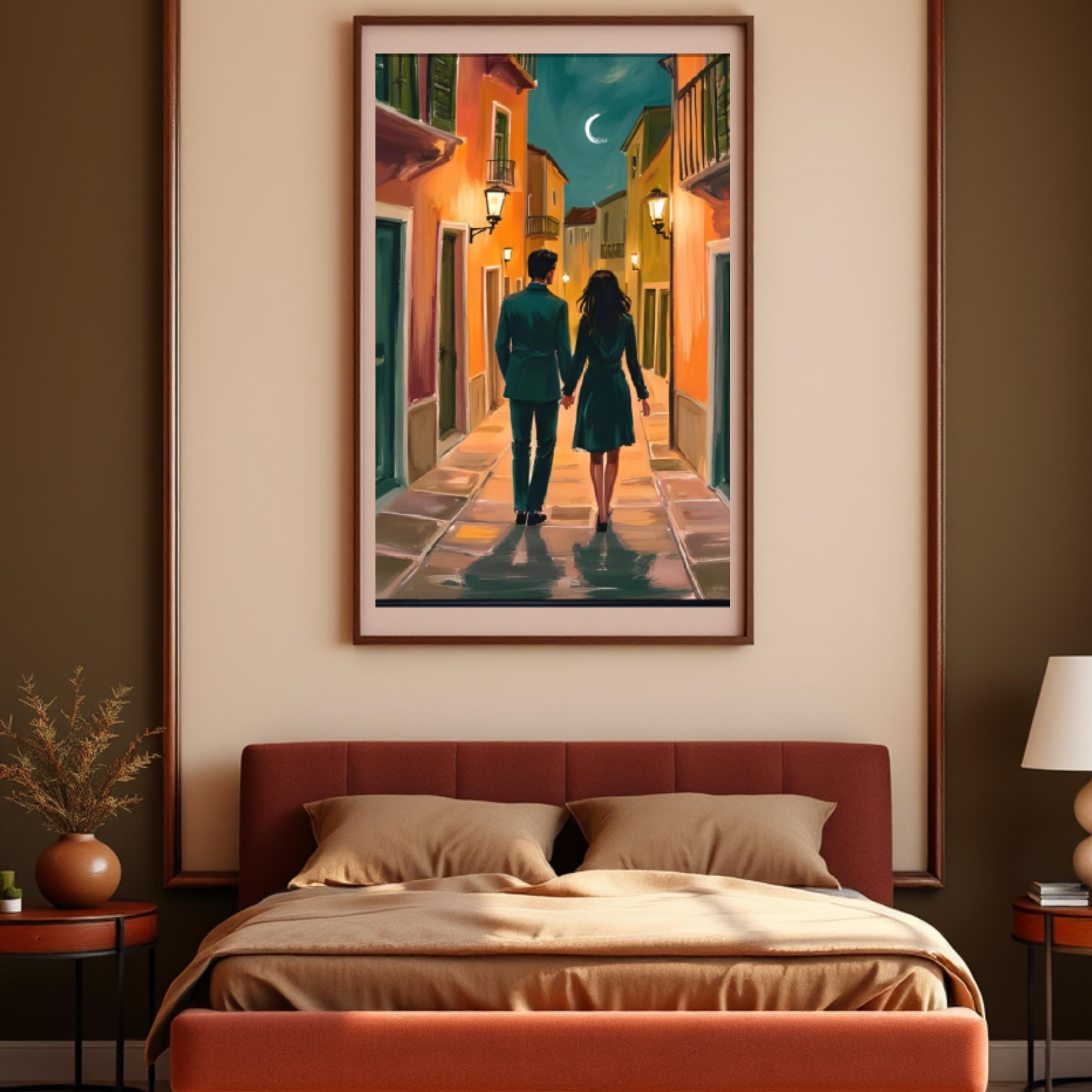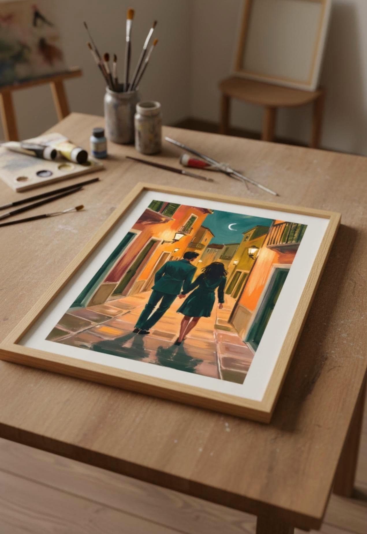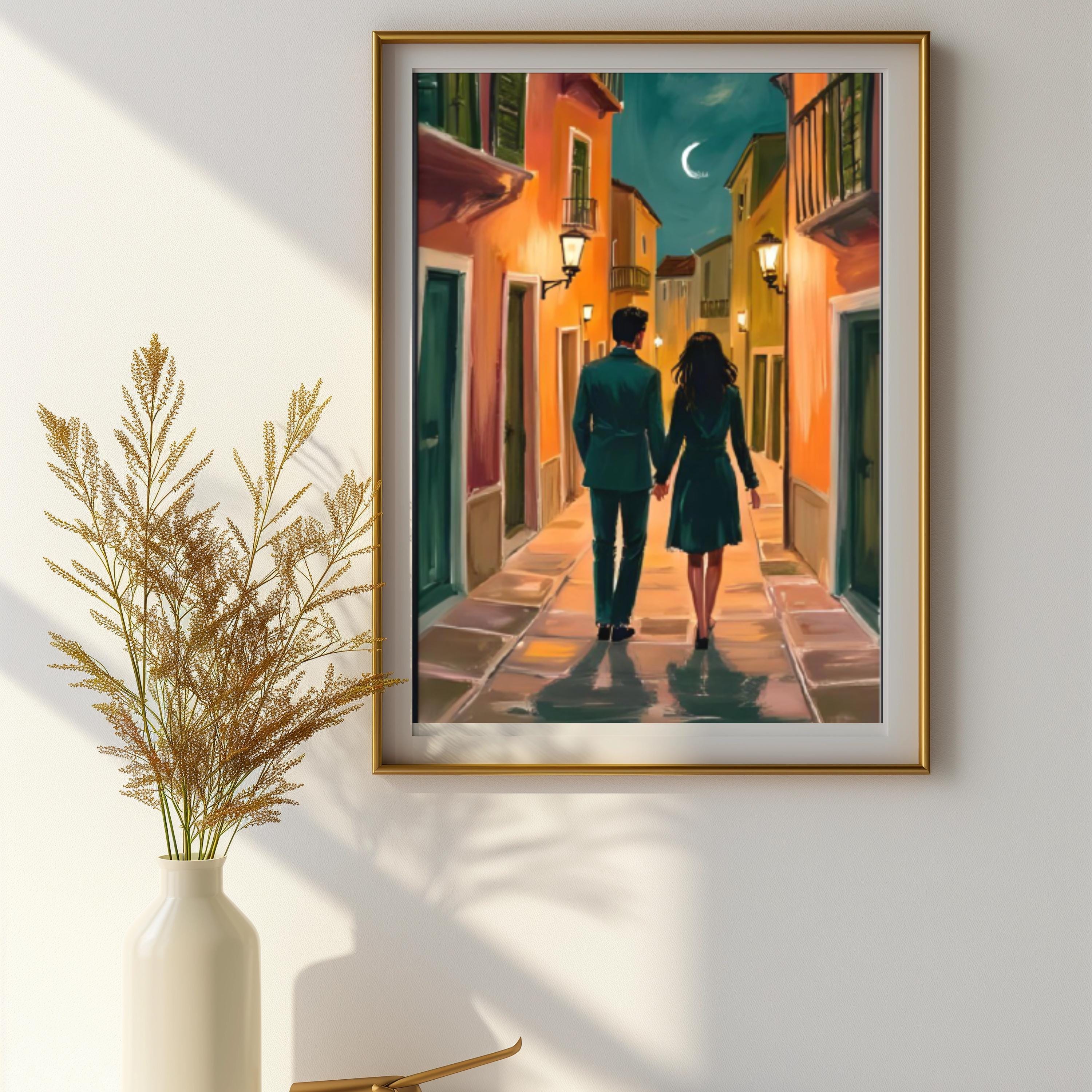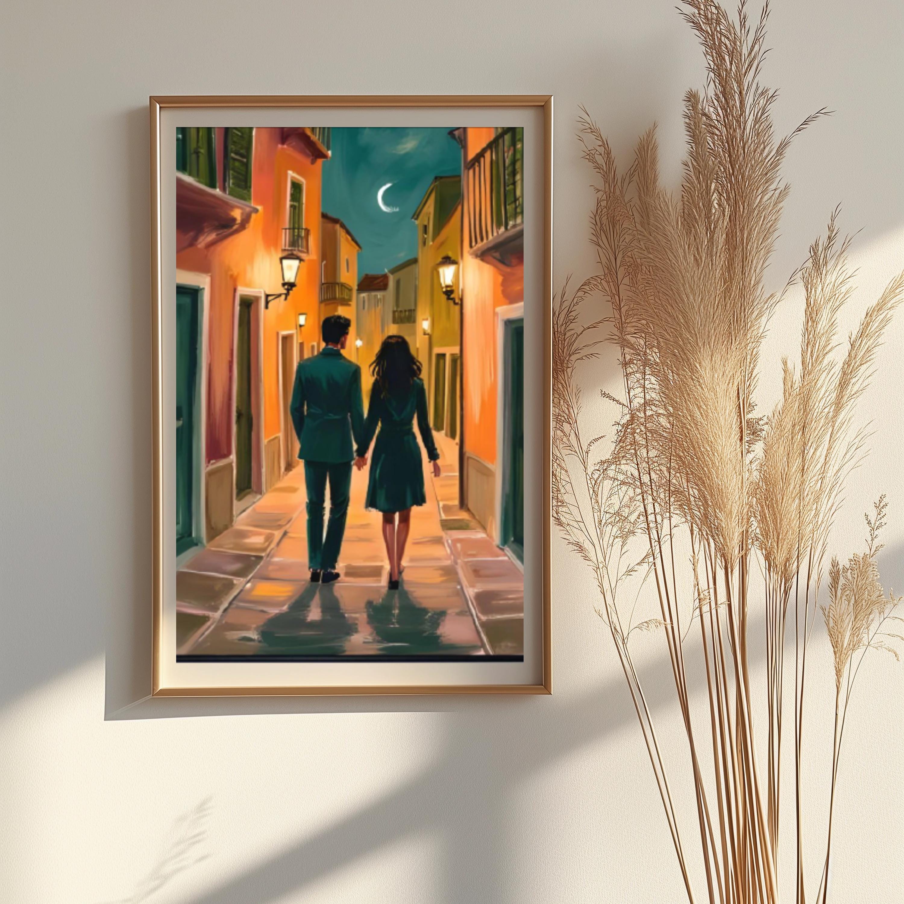 Italian Street Art Print European Travel Lover Decor Romantic Couple Painting