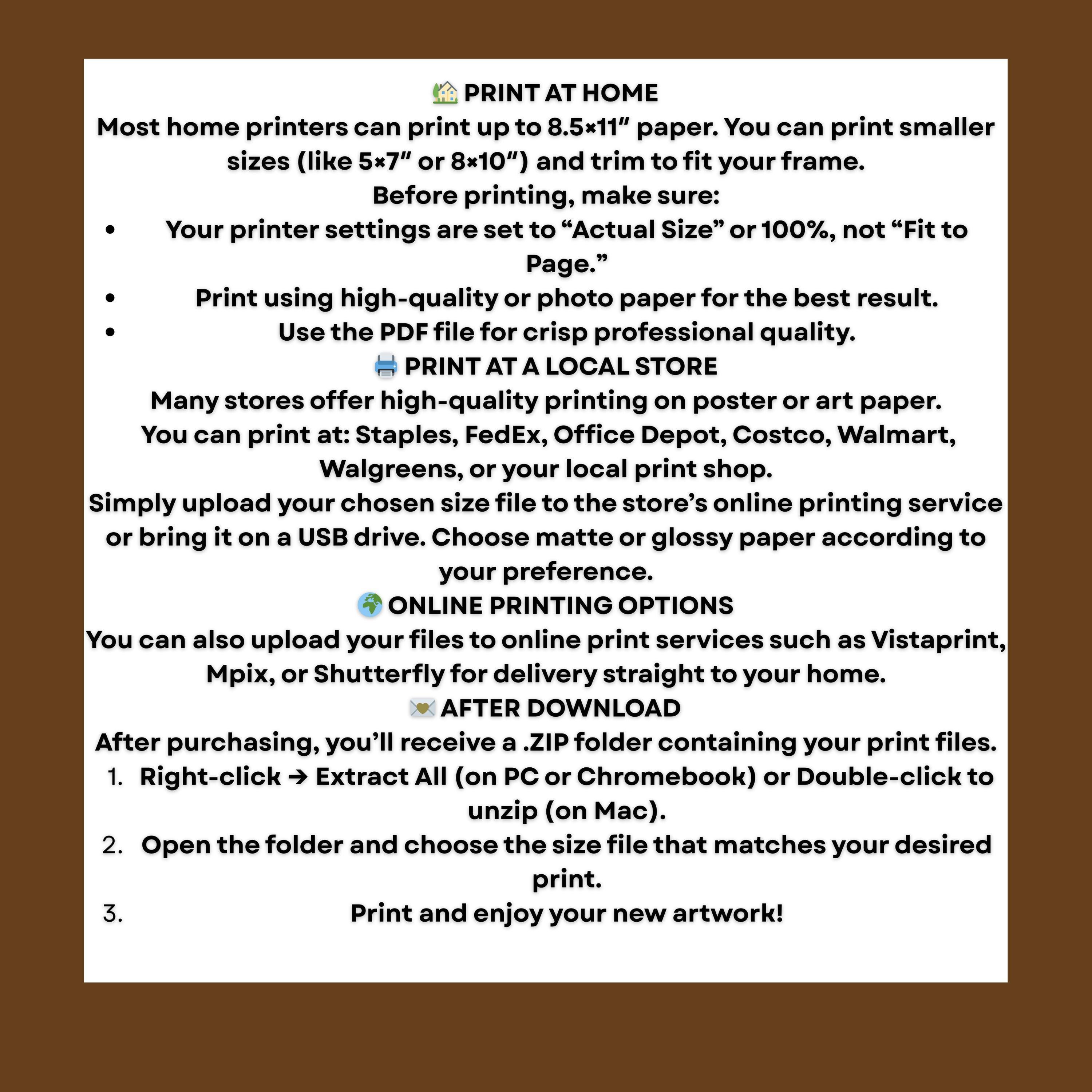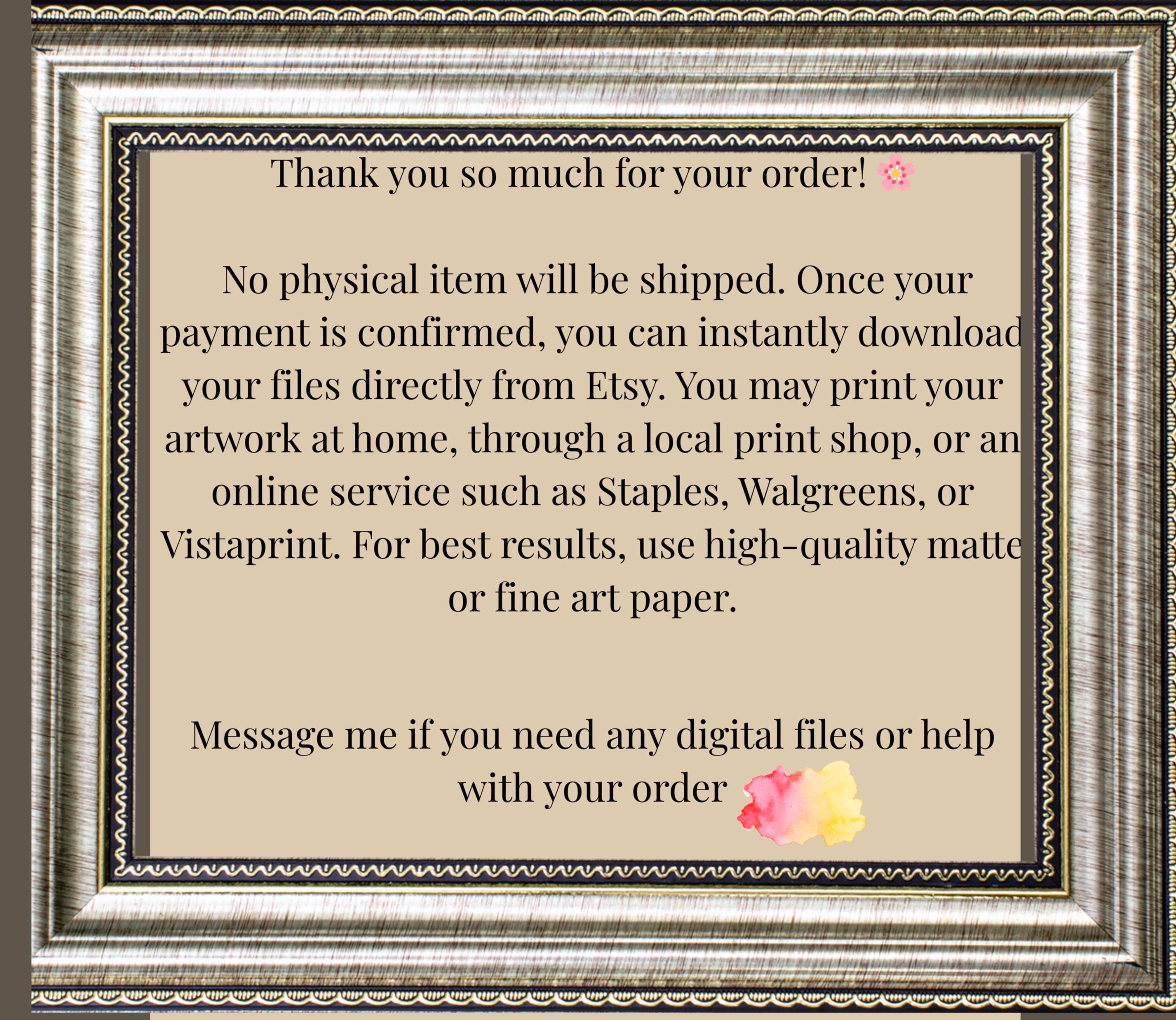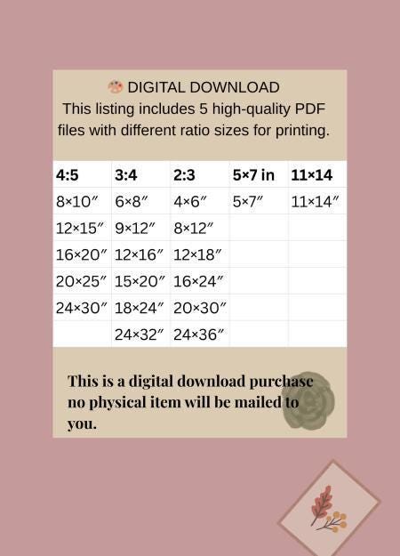 • Digital download allows for immediate access and printing at your preferred size