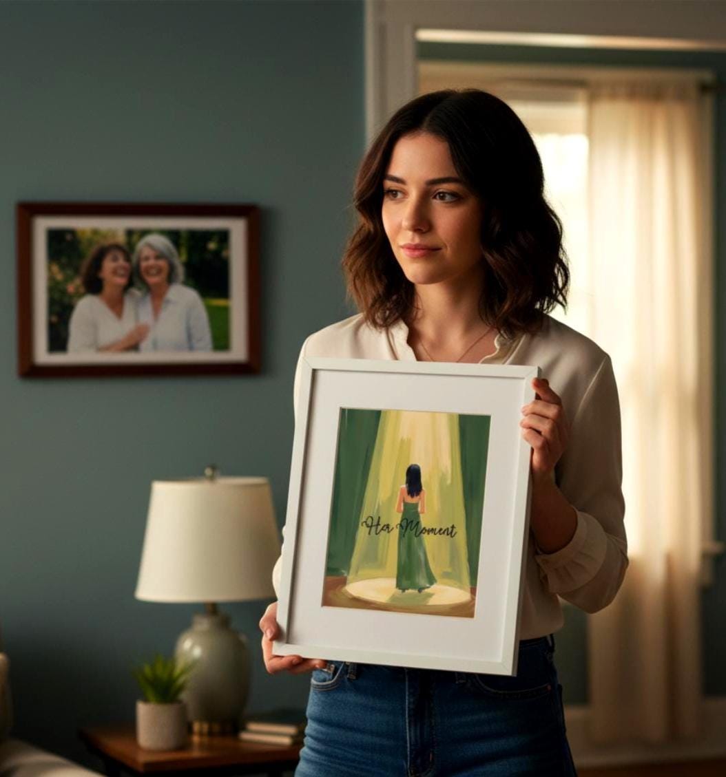 Celebrate the special bond between a theater mom and her daughter performer with this emotional digital print wall art capturing a magical stage moment in the spotlight. This stunning scene features an actress decoration perfect for home display in any acting room, making it an ideal gift that honors the theatrical journey shared between parent and performer.
